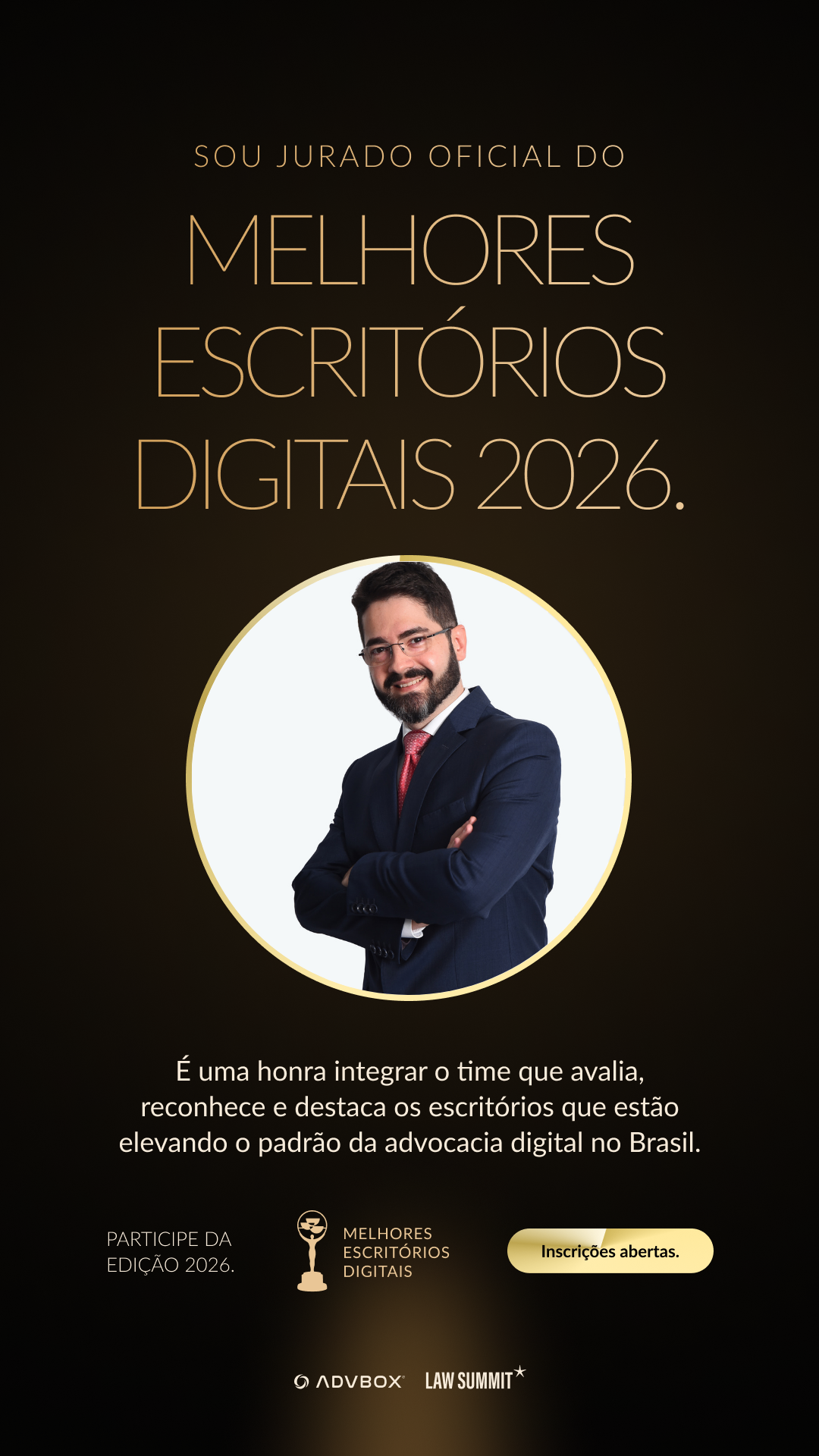 Recebi o prêmio ADVBOX como um dos Melhores Escritórios Digitais do Brasil e, pelo 3º ano consecutivo, integro o Comitê de Jurados do Law Summit 2026 (ADVBOX) — maior prêmio da advocacia digital, em reconhecimento à minha trajetória na transformação da advocacia.