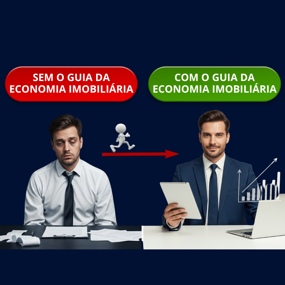 Todo esse conhecimento foi condensado no Guia da Economia Imobiliária — um caminho direto para quem quer dominar, de forma prática, o que realmente gera economia e autoridade no mercado imobiliário.